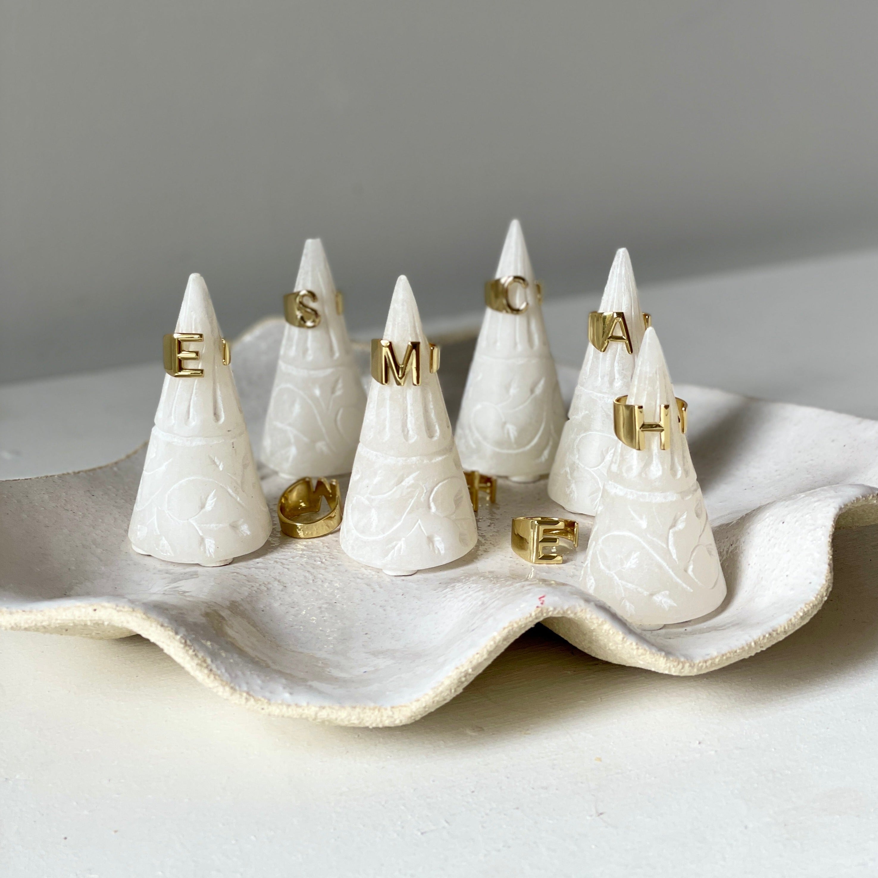 Please note, each letter is approximately 13mm high and sits vertically on the finger.